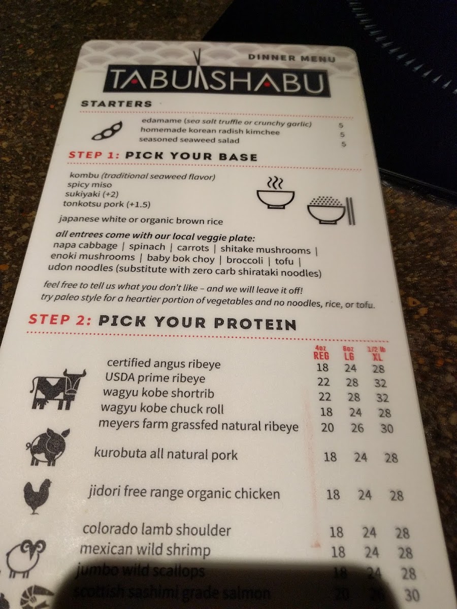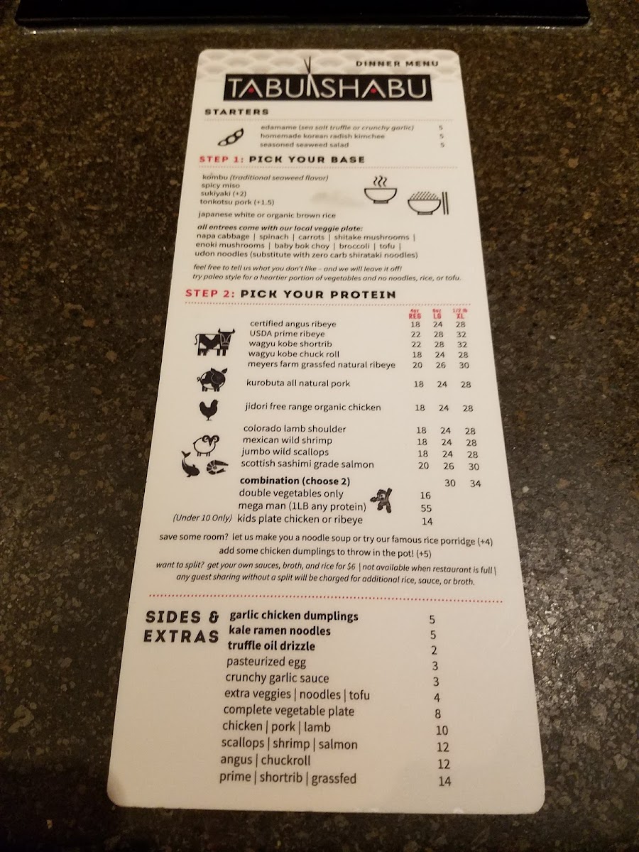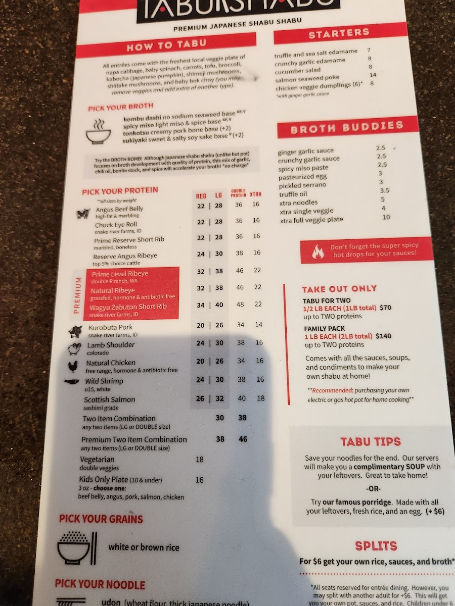 Tabu Shabu Costa Mesa Menu